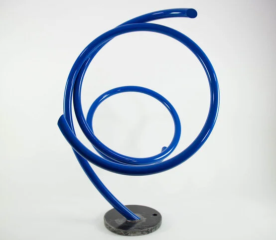 Mr. Clement’s site explains that his work “juxtaposes a variety of playing steel coils and arcs that, layered on top of one another, take on a life of their own. While today Clement focuses primarily on large-scale outdoor work …. his smaller works are, on their own volition, about to swivel about on their bases and spin about in space. Clement’s dynamic and dramatic union of form, line and negative space emphasizes the impression of implied movement.’’