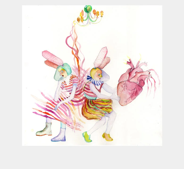 “My drawings are full of the familiar, the distant, unknown, imagined, and everyday. Bright lyrical vignettes of animals and people dance before us in a metaphysical picture plane, spilling across the walls into ever-building expanses. I weave the images into both linear and non-linear spaces, forming spatial contradictions that emphasize the vastness of space and the immediacy of our experience.