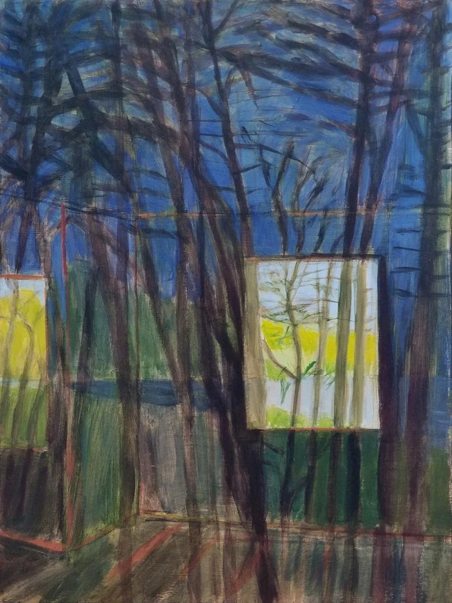 "From my modest home of more than a decade, I've appreciated the opportunity to observe and record some of my neighborhood's sightlines in paintings. Wildlife and trees, views of the nearby pond, and quiet peacefulness have reigned — until recently.