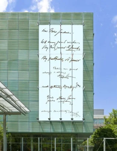 By focusing on these closings, Ms. Reichek hopes to illustrate the depth of Mrs. Gardner's and Mr. James's long friendship. Ms. Reichek says: "By making use of the older 19th Century private epistolary mode for a public contemporary art piece, I wanted to cross the literal passage between the old and the new....’’