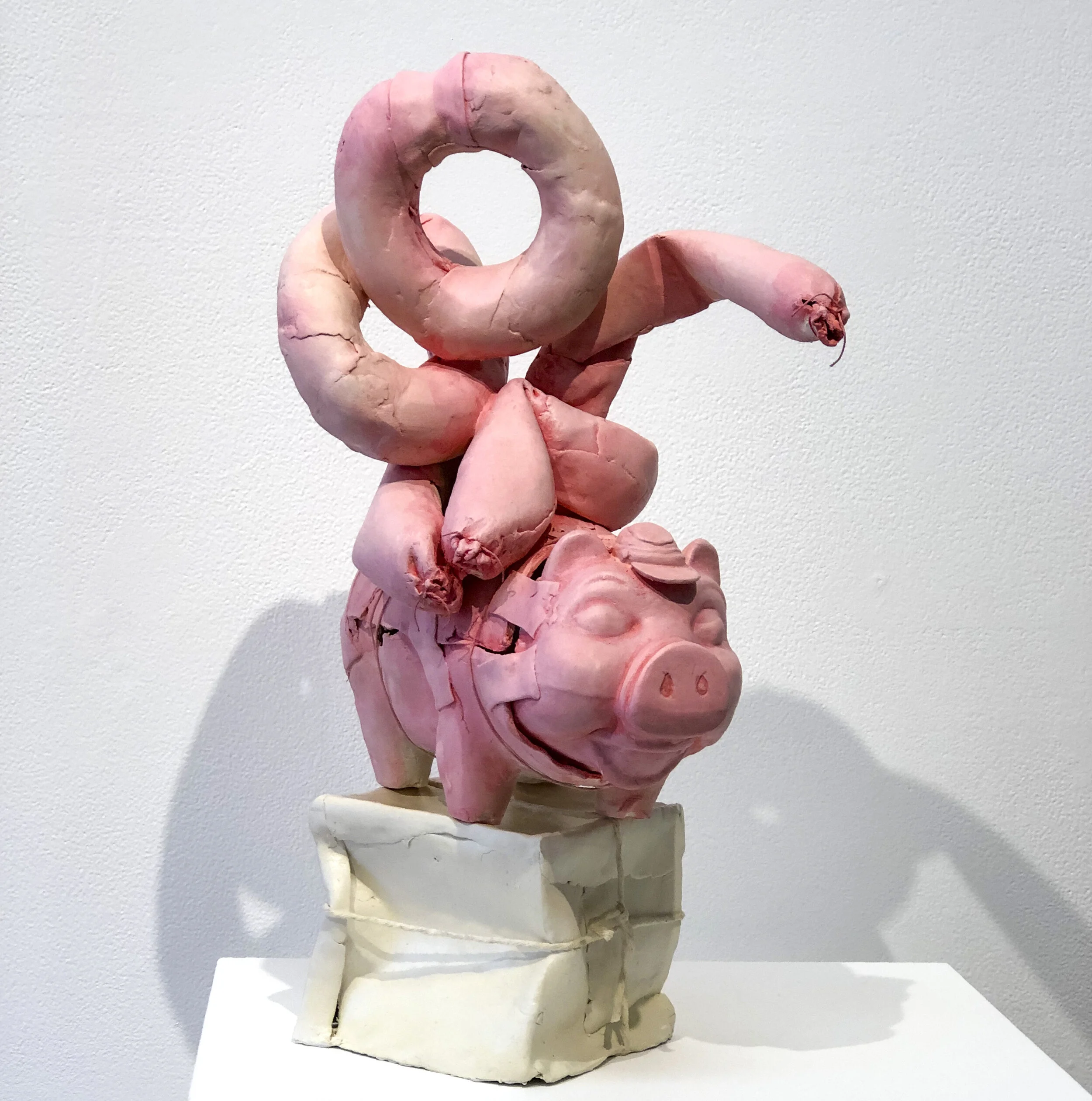 “Evolution of Form (This Little Piggy Went to Market)” (paper-mache clay, mediums), by Kathleen Volp, in Boston Sculptors Gallery’s “RING: Boston Sculptors Annual Member Show,’’ Jan. 29-Feb. 23.