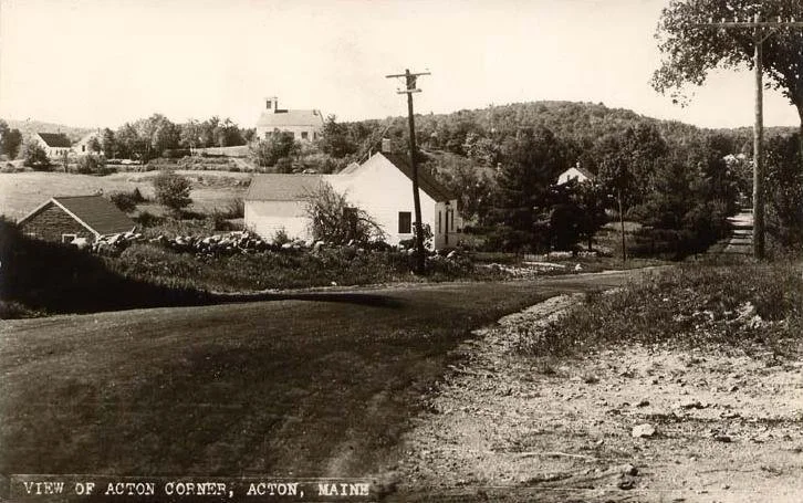 “{Acton, which is west of Portland} was first settled in 1776, by Benjamin Kimens, Clement Steele and John York, all from York, Maine. In 1779, Joseph Parsons built a gristmill on the Salmon Falls River, near Wakefield, N.H. Other mills followed at Acton's various water power sites, including sawmills, gristmills, a hemp mill, a carding mill, a felt mill, a tannery and a shoe factory. In 1877, silver was discovered near Goding Creek. Prospectors dug mines during the 1880s, after which the enterprise declined.’’