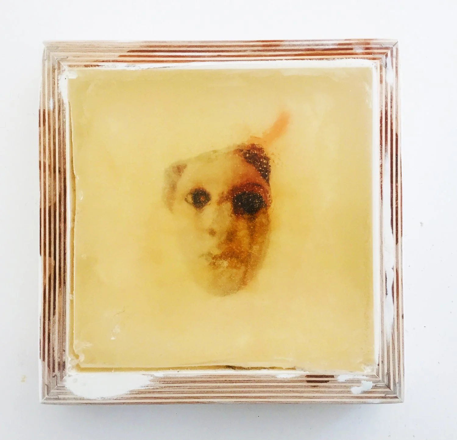 “Athenian fragment of a face,’’ (archival pigment print, oil, resin, wood ), by Boston-based artist Jennifer Liston Munson, in her show “Looking In + Looking Out,’’ at Kingston Gallery, Boston, July 5-July 30.