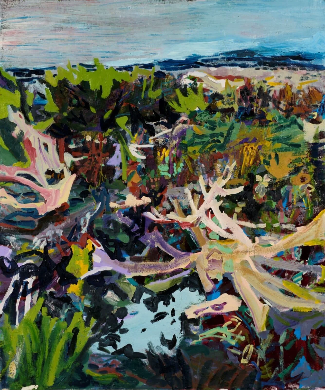 “After the Fall” (oil and acrylic on canvas), by Allison Gildersleeve, in her show “Here Somewhere,’’ at the Lyman Allyn Museum, New London, Conn., Oct. 11-Jan. 18.