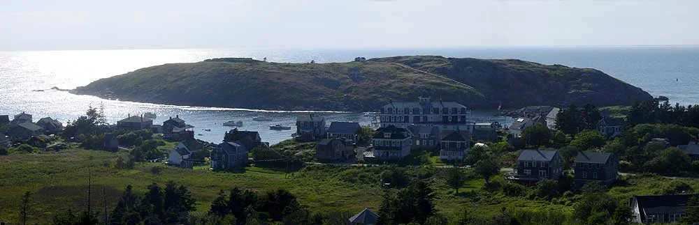 The village of Monhegan on Monhegan Island, with uninhabited Manana Island in the background. Monhegan has fewer than 100 year-round residents.