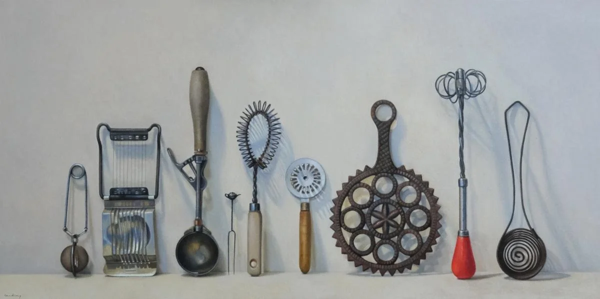“Intimations” (oil on linen) by Middlebury, Vt.-based painter Kate Gridley, at Edgewater Gallery, in Middlebury. Her Web site says: