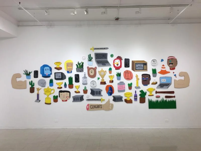 The work being featured comes from Mr. McCool's recent residency at the Boston Center for the Arts. "My residency, and this exhibit, provide a chance for people to celebrate their friends, loved ones, and also themselves. During the workshops people will get a chance to create trophies, pose on top of Olympic-style award podiums, and reflect on our culture's pressure to compete, succeed and get ahead." he said.