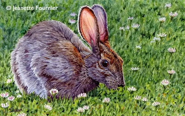 “In the Clover” (watercolor), by Jeanette Fournier, a North Woodstock, N.H., painter.