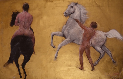 "Dream Drawing With Stallions'' (mixed media on paper), by Nancy Ellen Craig (1927-2015), in the show "Renaissance Dream Paintings,'' at Berta Walker Gallery, Provincetown, May 6-July 5.