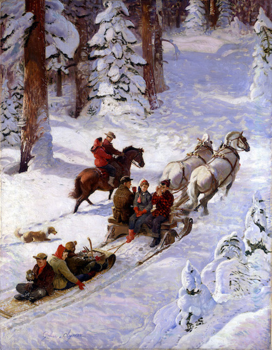 "Winter Sleigh Ride'' {would there be a summer one?} (oil on canvas), by John Clymer (1907-1989), Saturday Evening Post cover, Dec. 17, 1949, at the National Museum of American Illustration, Newport, RI. (© Image courtesy American Illustrators Gallery, NYC, 2016)
