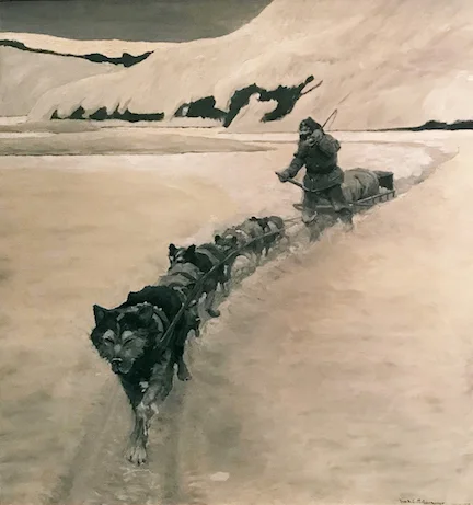 "John Messner Clung With Mittened Hand'' (oil on canvas), by Frank Schoonover, at the National Museum of American Illustration, Newport, R.I.