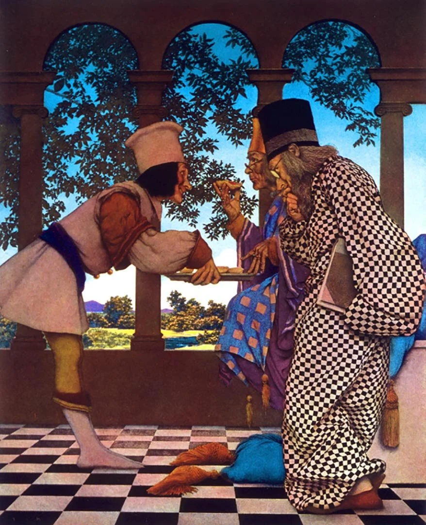 “The Knave of Hearts - The King Samples the Tarts” (oil on paper on board), by Maxfield Parrish (1870-1966), at the National Museum of American Illustration, Newport, R.I.
