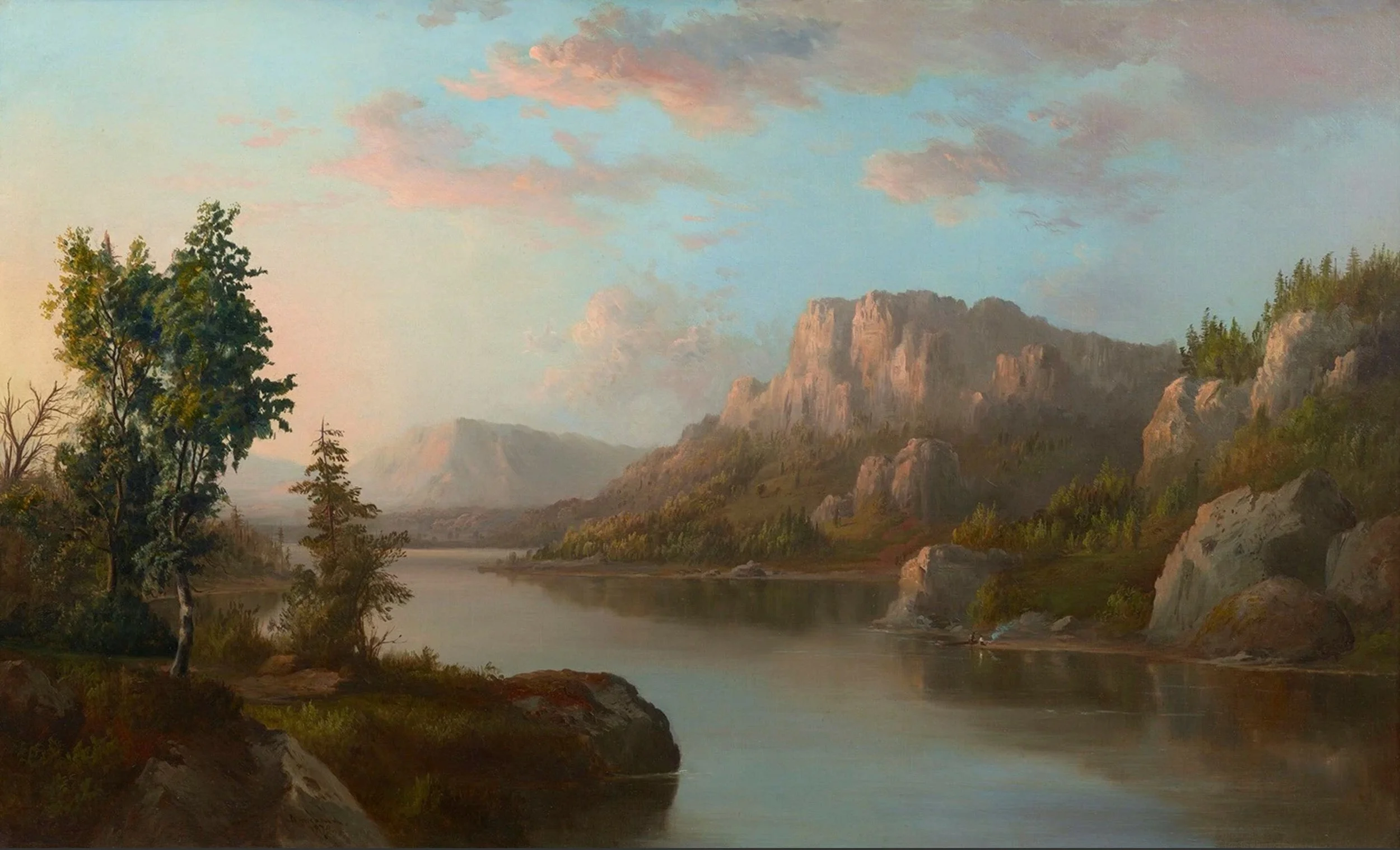 “Robert S. Duncanson is considered a member of the second generation of Hudson River School painters and is celebrated for his idyllic pastoral scenes of peaceful rivers and verdant mountains. Successful during his lifetime, he was known in the 1800s by American press as the ‘best landscape painter in the West,’ and London newspapers hailed him as an equal to his British contemporaries. Born a freedman in Seneca County, N.Y., in 1821 to mixed-race parents, Duncanson moved to the prosperous city of Cincinnati in 1840 to pursue a career in the arts, and he taught himself by painting from nature and by copying reproductions of works by Hudson River School masters. In the late 1840s, he befriended local landscape painters Worthington Whittredge (1820-1910) and William Louis Sonntag (1822-1900), with whom he took numerous sketching trips, including a European Grand Tour with Sonntag in 1853. In the ensuing years, Duncanson traveled throughout North America and Europe, exhibiting and selling work with great success, despite being excluded from many of the expositions in America that his white peers could participate in. His paintings commanded up to $500 per work—a very high sum at the time. Duncanson died at 51, and while his work fell into obscurity for many decades, he is now recognized as a premier 19th-Century landscape artist, who broke barriers and paved the way for landscape painters and Black artists for generations to follow.’’