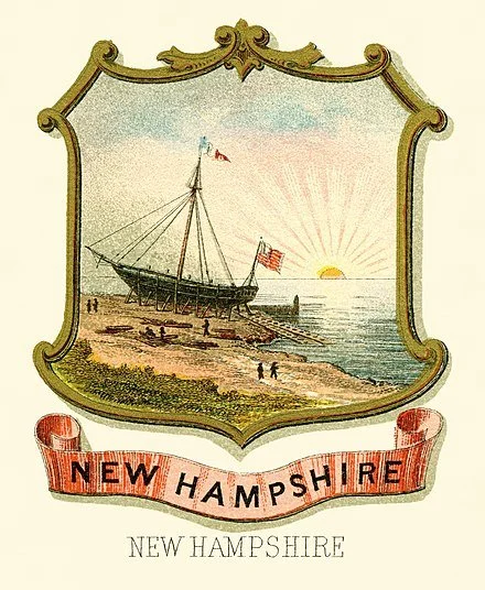 The state seal. The ship is a reference to the state’s Port of Portsmouth, which long played a key role in the state’s economy.