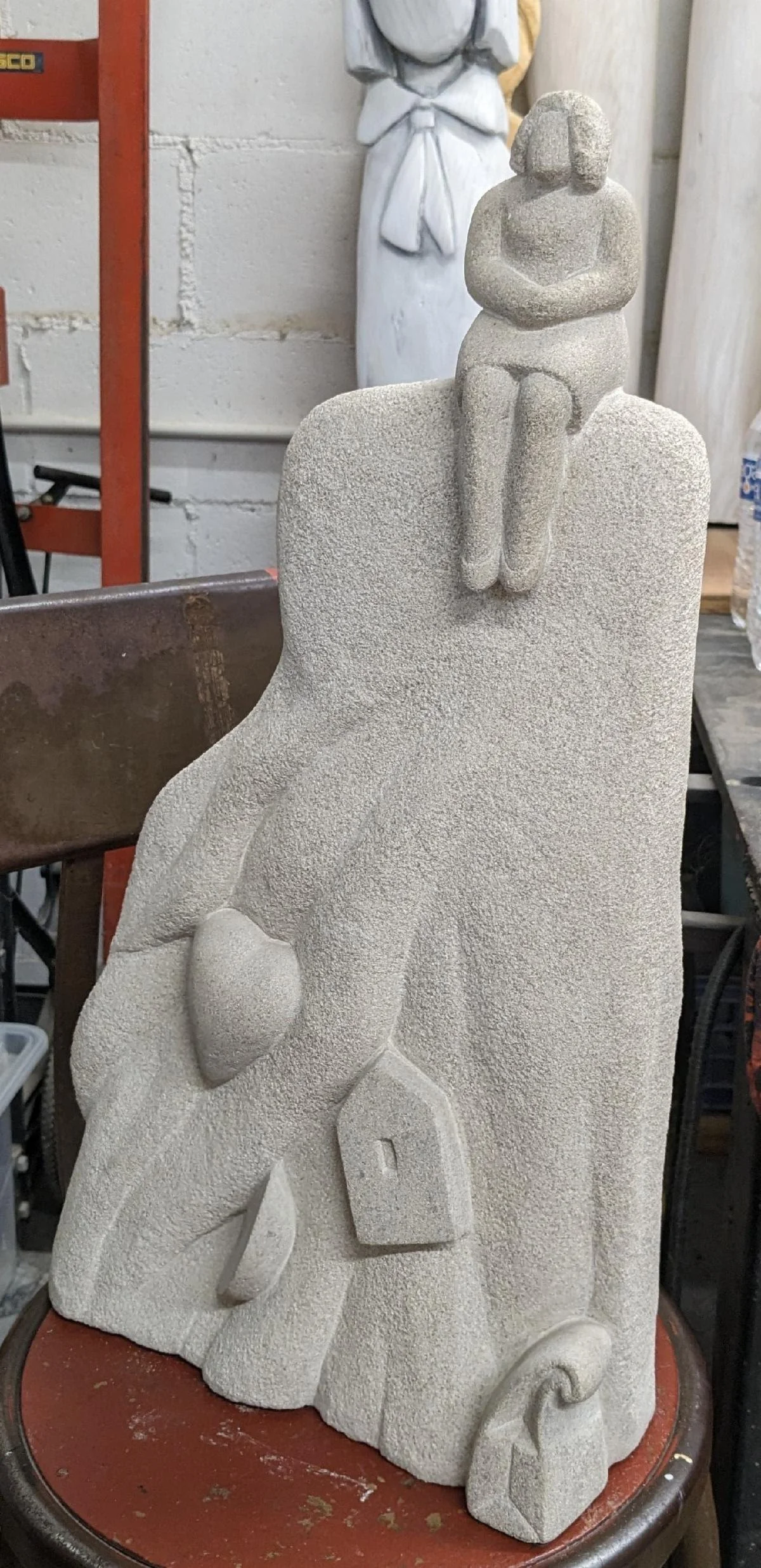 “Soledad/Solitude” (Indiana limestone), by Boston-based sculptor Nora Valdez, in the show “Rock Solid XXIII,’’ at Studio Place Arts, Barre, Vt. (“Granite Capital of the world”).