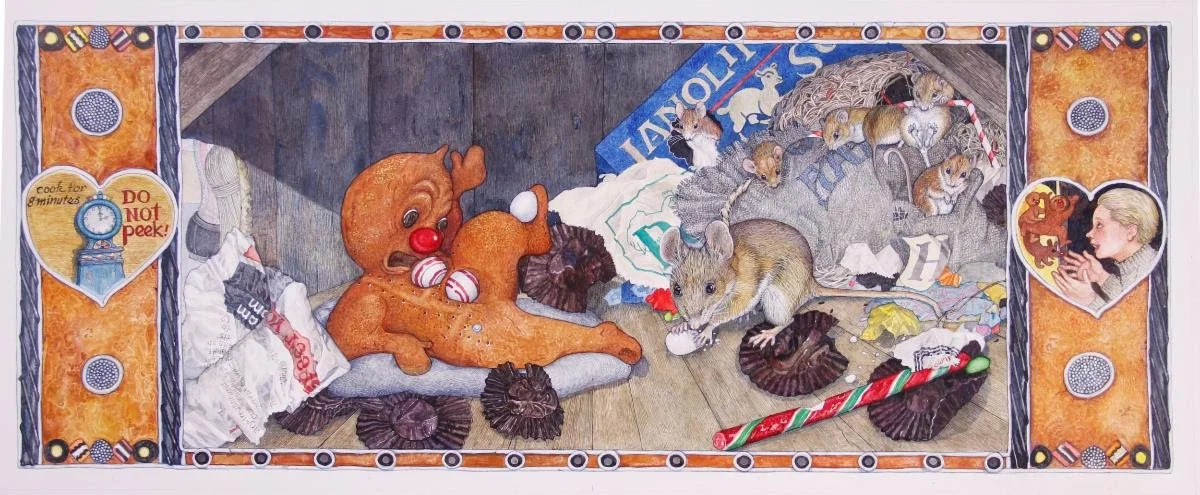 “Scritchy Scratchy,” by Jan Brett (watercolor on paper, illustration for Gingerbread Friends), in the show “Jan Brett: Stories Near and Far,’’ at the Norman Rockwell Museum, Stockbridge, Mass., through March 6.