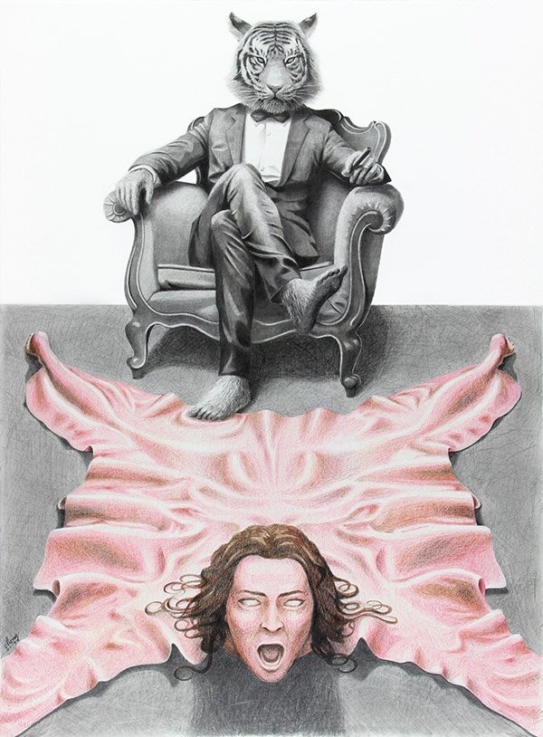 “In Sammy Chong’s surreal drawings of endangered species, anthropomorphized animals are empowered as the dominant species in a hierarchical, fictional reality. Shining light on animal extinction, the work reminds viewers about the impact of our habits and choices on the world and its creatures.’’