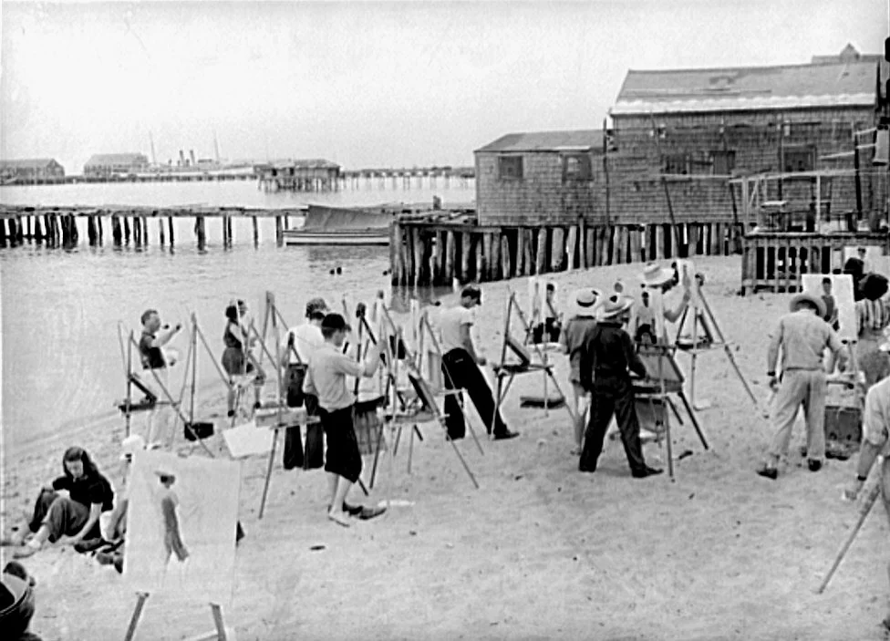 In 1940, a beachfront art class in Provincetown, which has been a major art-creation-and-exhibition center since the 19th Century.
