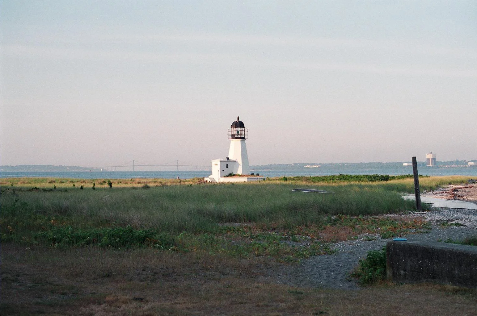 Prudence Island Light, with the Mt. Hope Bridge in the background