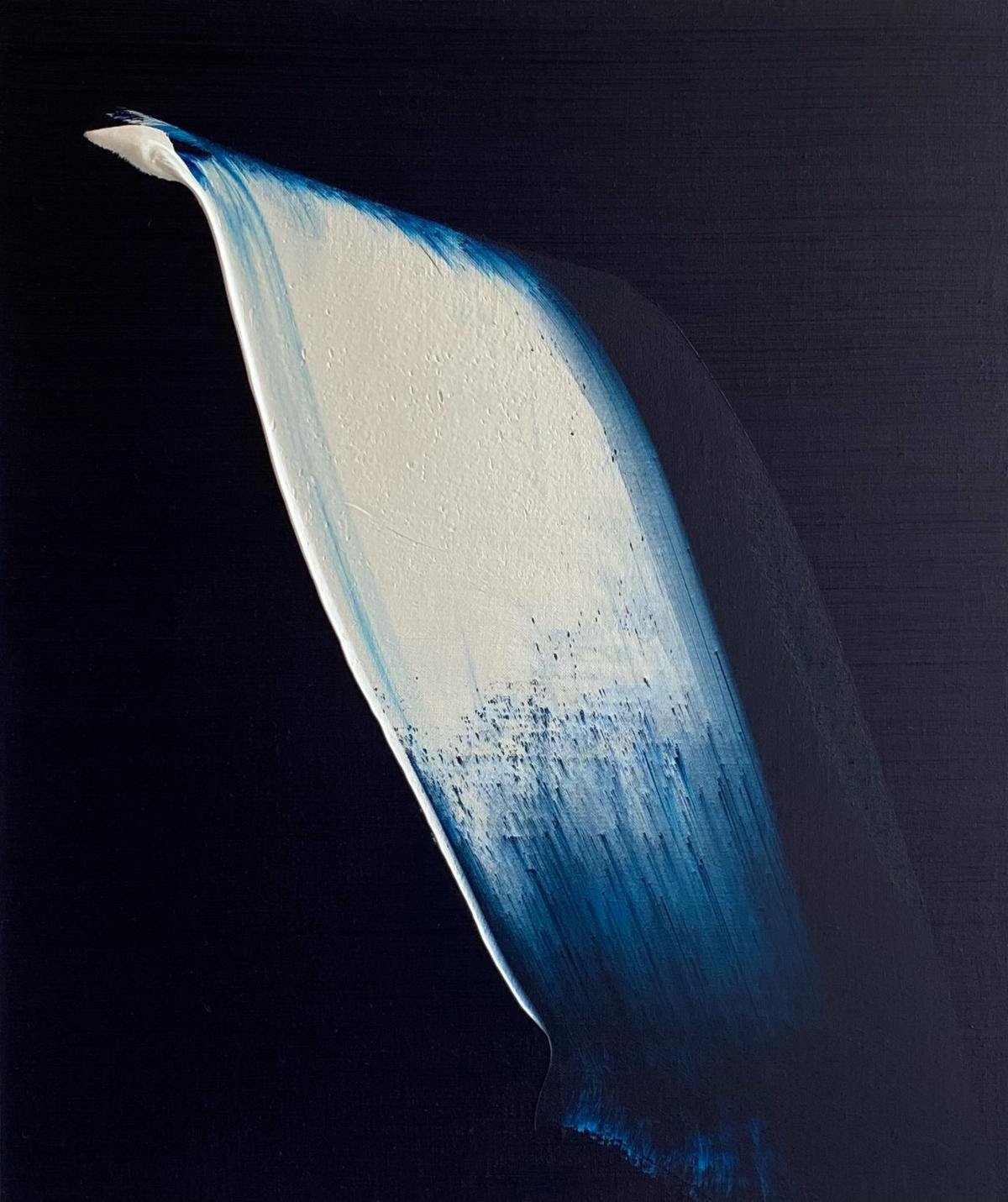 “Nocera contemplates the simplest concept of what light is: A powerful force that reveals truth. In these gently powerful works that swim in their mystical deep blue hues, the infinite possibilities of light begin to bloom forth in the mind of the inspired onlooker as they take note of how the paint seems to emerge into light from the canvas. Nocera paints outdoors to fully immerse himself in the clarity of the natural light as he works the painting’s surface. This physical, tactile surface along with the process of creating are most important in his artistic expression.’’