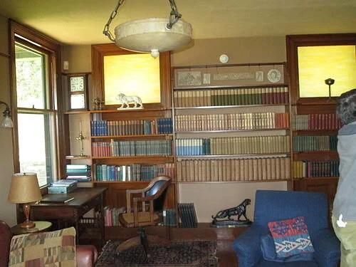 The Rudyard Kipling House in Dummerston, Vt. It’s owned by a nonprofit preservation trust and you can pay to stay there. Photo of the library below.