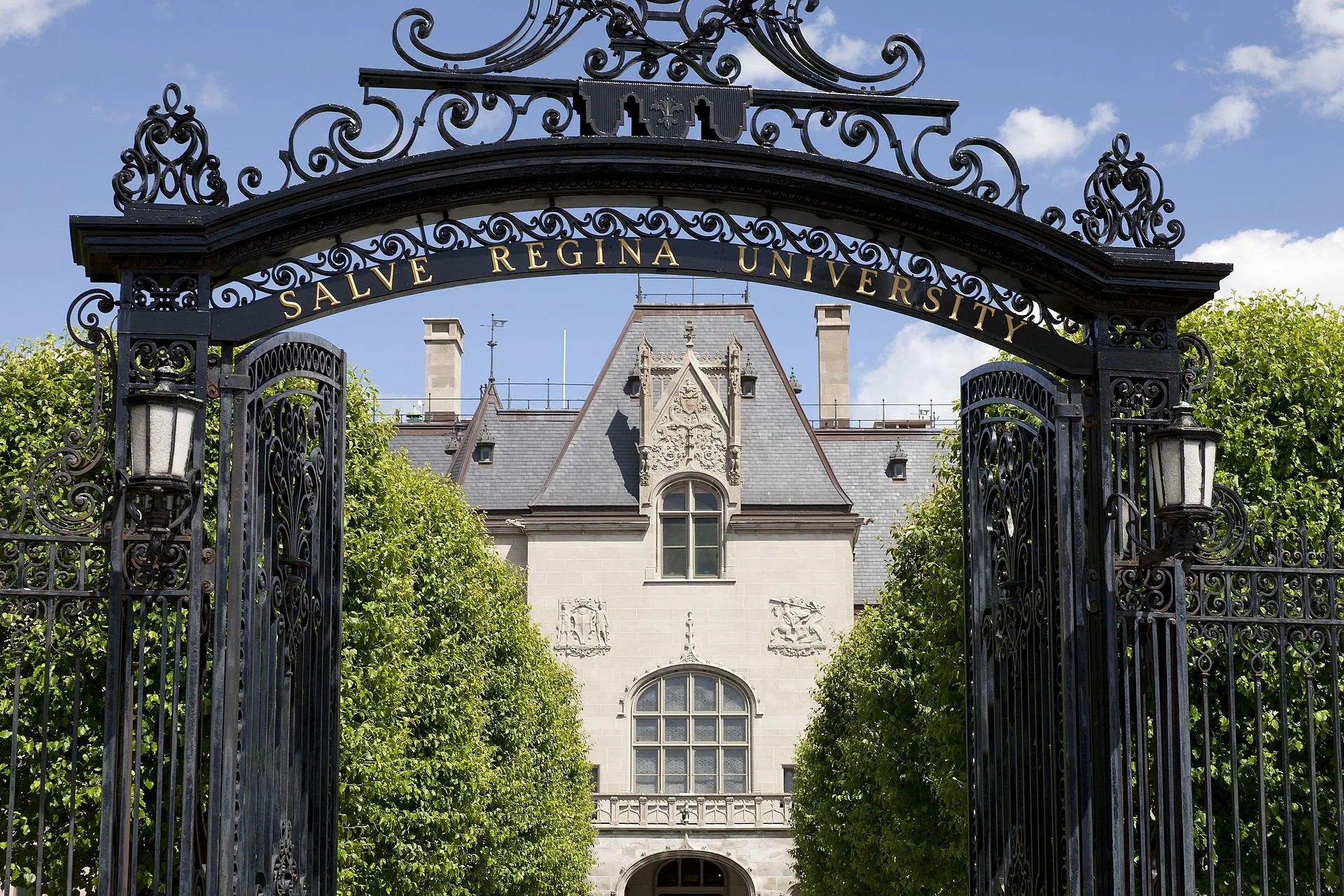 Entrance to Ochre Court, Salve Regina University's first building. Salve is in the middle of the famous mansion district of Newport, R.I. (See Salve news below.)