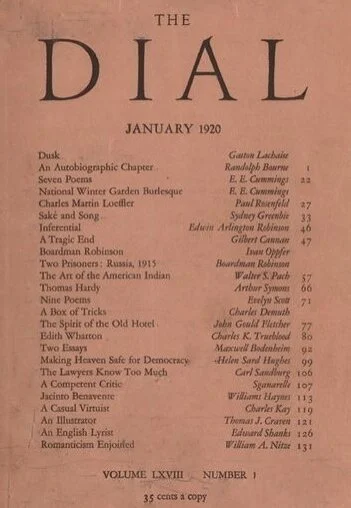 Be that as it may, writers were soon falling over each other in an undignified rush to get their work into the pages of this little magazine. All the above-mentioned critics appeared in The Dial in its first year and frequently thereafter, and the magazine went on to become arguably the most important of the magazines to promote and discuss those creative works that would come to be referred to, for better or worse, as “Modernist.”