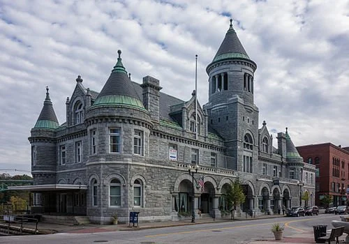 The old post office in Augusta, Maine, a notable example of Romanesque architecture