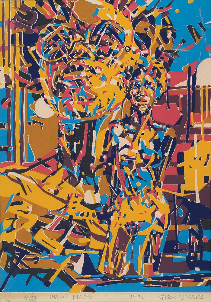 “Nelson Stevens (American, 1938-2022), an artist and educator, is renowned for creating powerful, rhythmic compositions that celebrate Black life and reveal his technical mastery of the figure.’’
