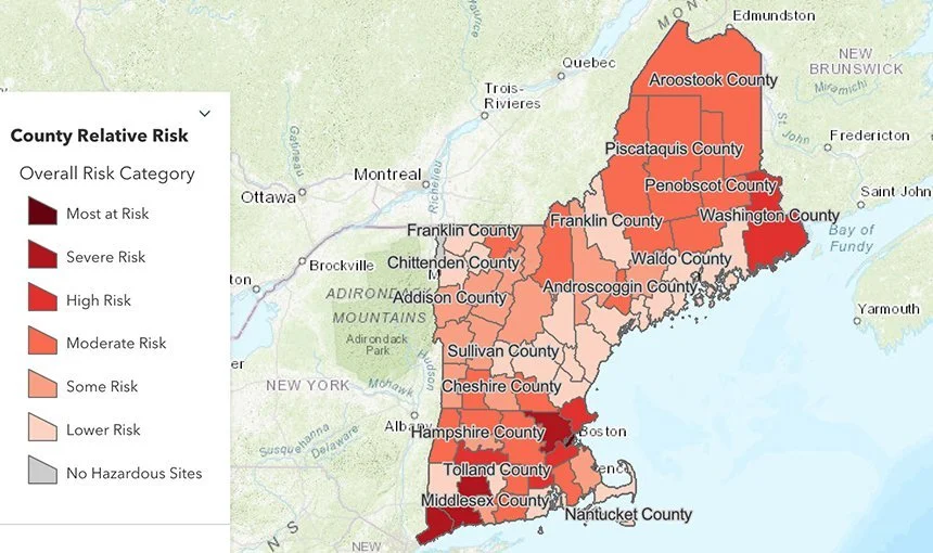 Providence County, in Rhode Island, and Suffolk County, in Massachusetts, are two of the most at-risk counties in New England from pollution buried at toxic sites.
