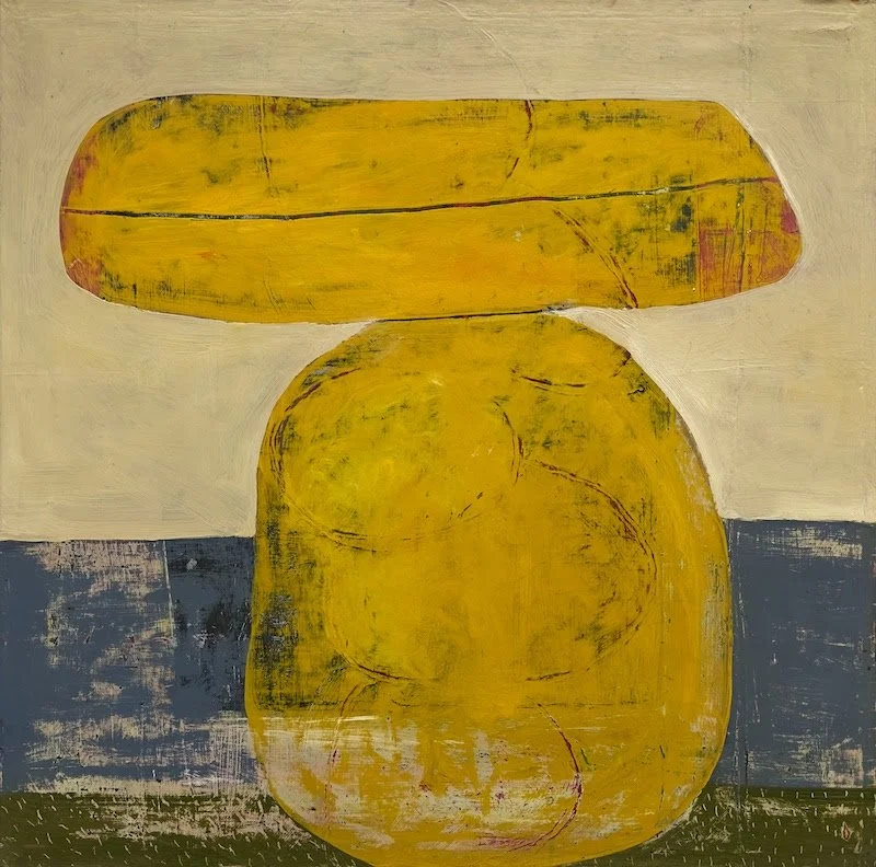 “Rock 234: Yellow Flag” (painting), by Tom Gaines (1935-2023), in the show “Tom Gaines: The Last Paintings,’’ at Corey Daniels Gallery, Wells, Maine. Mr. Gaines was based in New Jersey but also painted at his summer home, in Belfast, Maine.