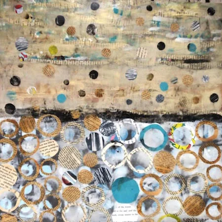 "Layers of Time No. 3" (encaustic and collage on panel), by Willa Vennema, in the "Beneath the Surface'' show of encaustic works by artists from around New England at the Saco (Maine) Museum through May 28.