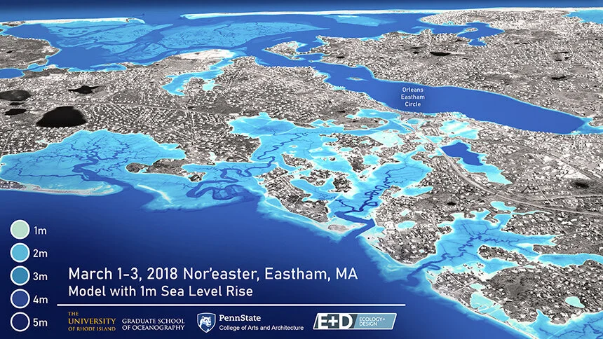 Realistic 3D visualization for Eastham, Mass., along the Cape Cod National Seashore using advanced modeling results of a March 2018 nor'easter with 3 feet of sea-level rise