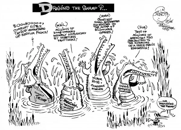 Mnuchin spent 17 years as an executive at Goldman Sachs before continuing his lucrative career as a banker and investor. Is this not the swampiest of characters that Trump vowed to drain away?