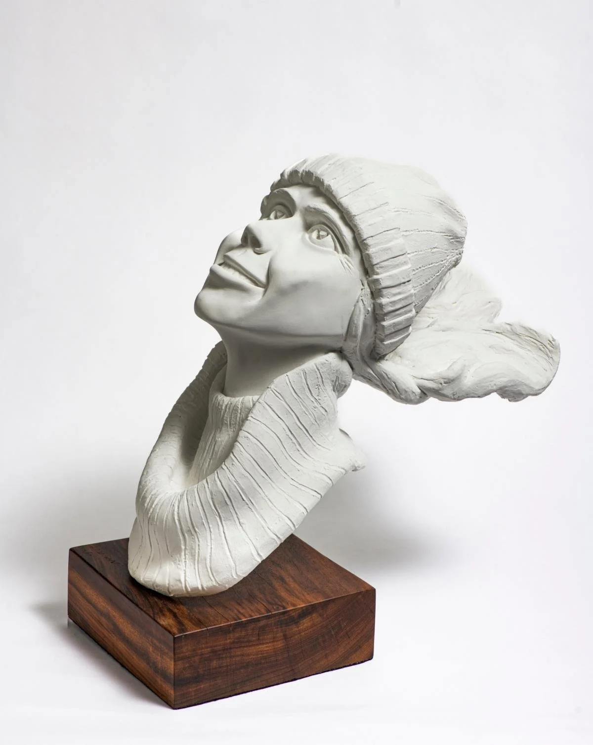 “In Winter” (cast resin), by Memy Ish-Shalom, in his show “Dreams and Memories, ‘‘ at Galatea Fine Art, Boston, Dec. 2-Jan. 8. He’s an immigrant from Israel now living in Newton, Mass.