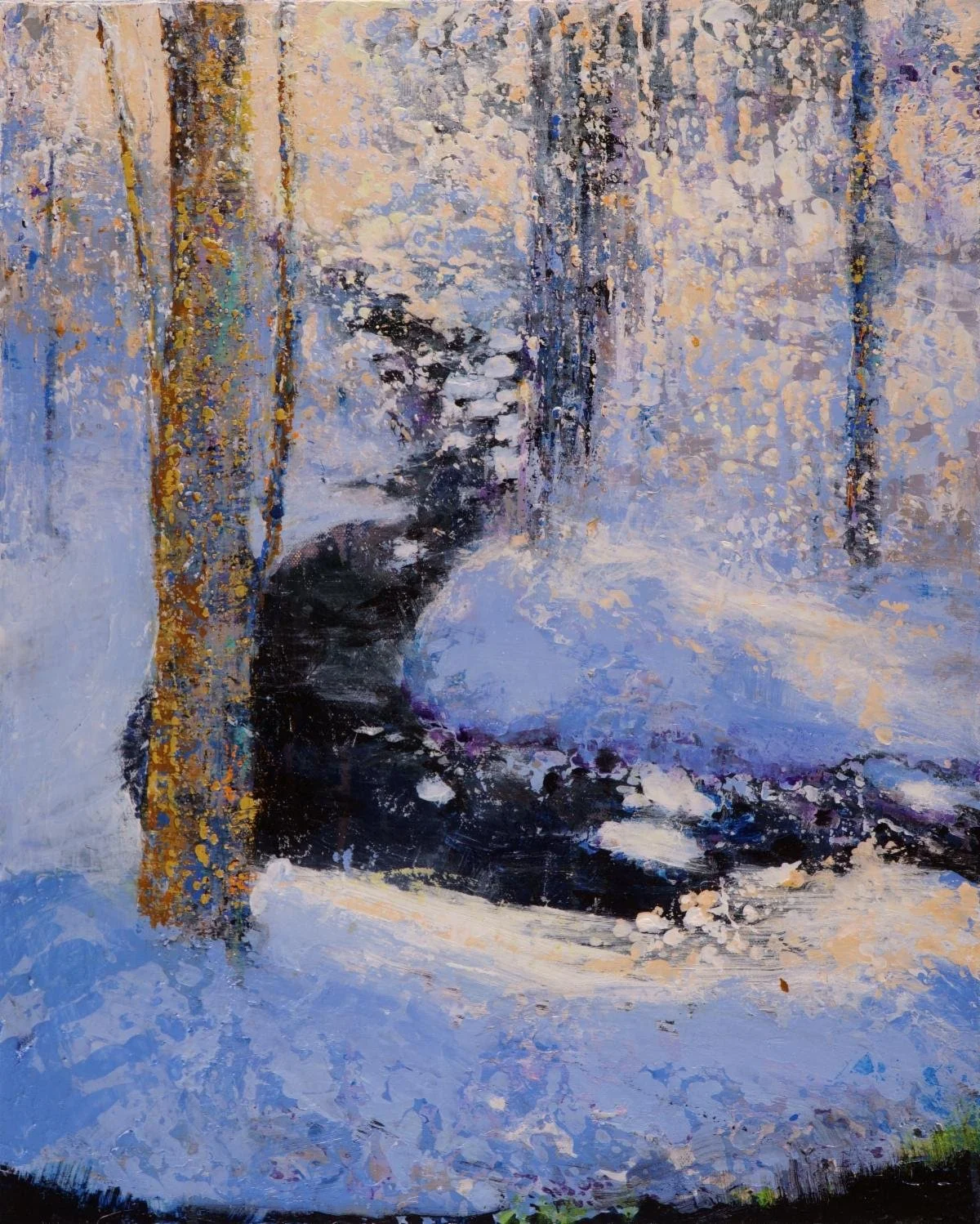 “Winter Rill” (acrylic on canvas), by Anni Lorenzini, in her show “In Sight: Notating the Landscape,’’ at Galatea Fine Art, Boston, Feb. 3-26. She lives part of the year Waterford, Vt.