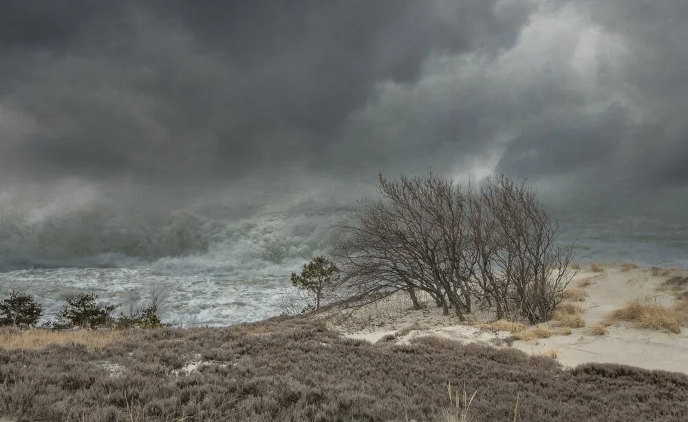 “In her current project McKenna creates images that are meant as harbingers from the future. They present the intertwining of ocean and shore environments as sea level rises. Her selection of locations to photograph is informed by, but not limited by, maps of projected sea level rise of 6 feet, a possibility by 2100. The mapping is visualized online by the National Oceanic and Atmospheric Administration. …