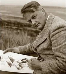 Roger Tory Peterson at work, probably in or near the Connecticut River Valley.