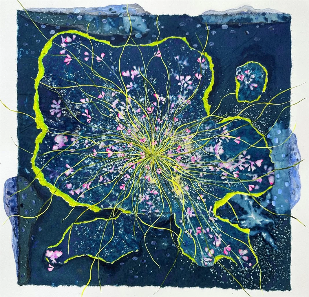 “Emerging’’ (Cyanotype collage enhanced with hand-painted tape and acrylics), by Ann-Marie Gillett, in the show “Celebrate Spring,’’ at Spring Bull Gallery, Newport, R.I., through April 27.